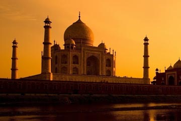 Early morning visit Taj Mahal at sunrise. Agra, the home of the immortal Taj Mahal, the inimitable poem in white marble is the first expression of love of an Emperor Shahjehanto his queen Mumtaz Mahal. This greatmonument was completed in 1653 AD. (Taj Mahal remains closed on every Friday.)